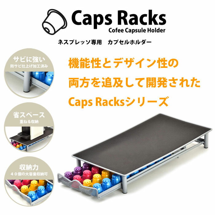 商品説明 ネスレ ネスプレッソ(nestle nespresso) カプセルホルダー 引き出し型 40カプセル用 シルバートップにネスプレッソ本体、コーヒーカップ、シュガー、フレッシュ等が置ける引き出し型。